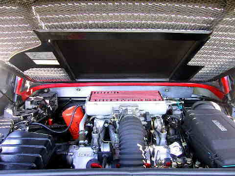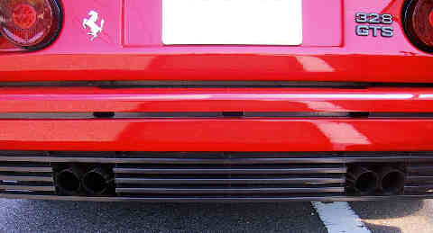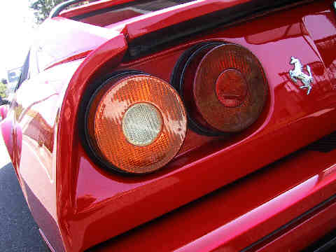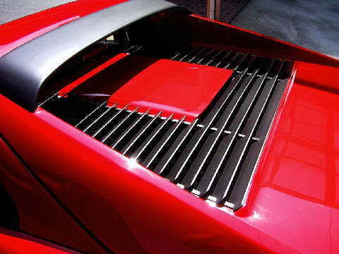 前回はフロントまわりをアップしたので、今回は後まわりなど書いてみようと思います。FerrariはF355まではお約束のトンネルバックスタイルで、アミアミ仕様になっています。エンジンと排気システムが狭い場所に集中していますので、普通のフロントエンジンの車とは熱の出方が相当違います。熱を逃がす為にはこのアミアミ仕様は一番手っ取り早い方法で、ごく自然な方法なのですが、雨や洗車の時の水が容赦無く入り込みます。まさにバイクに似ていると言えます。エンジンが冷えている時なら大丈夫かもしれませんが、暖かい時点で水をジャブジャブかけるのは、一寸心臓に悪いです。