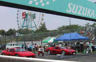 まあ、結果はさておいて、その交わるサウンドは、まさに年一回やってくるF1サウンドである。走行会でも鈴鹿のストレートを並走する事はあまりないので正直言ってこの時の音は素晴らしい音だった。グランドスタンド側をイトレー管、ピット側をMS管、2台並んで音の快音シャワーだった。サーキットで聞く355サウンドは多分市販車では一番な音なのではないだろうか。当然、ギャラリーは大騒ぎで大喝采だった。何故か誰もが訳の解らないニヤケ顔であった。わはははは。。。