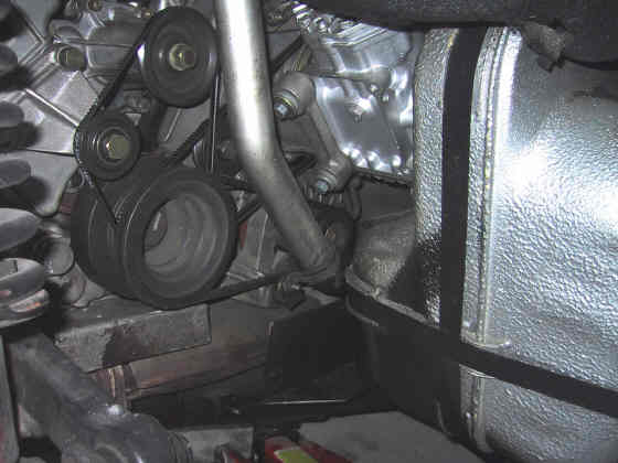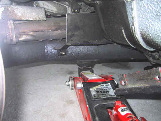 | 車載ジャッキとガレージジャッキで車を保持して馬もかませておきます ついでに補機類のベルトも点検します |