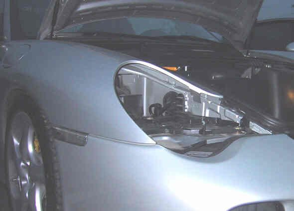 hakana22さんの996GT2の右ヘッドランプ・ユニットがごっそり外されていた!