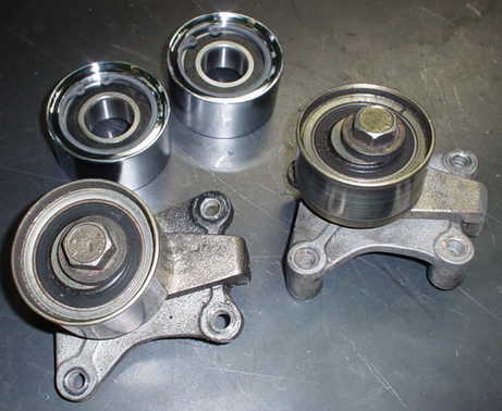 | 外した純正と 上が「がらぱん製」 テンショナーベアリング | 装着の画 |