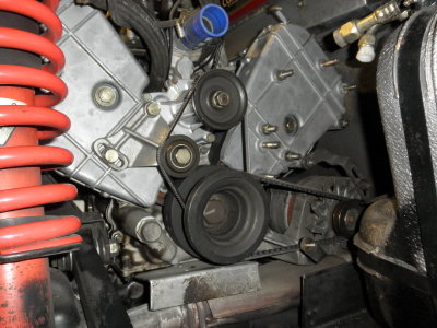 エアコンのコンプレッサー撤退です。 2011年2月 大本営より「コンプレッサー撤退」発令です。 正直な事を言うと、クーラーの必要な季節は、この車は乗らない方がベターと僕は思います。夏は乗るなら太陽が昇る前、雨天は乗らない。渋滞する所には行かない。 つまり、天気の良い日を待ち、道路の空いている時間帯で、気ままにアクセルを踏む。僕のスタイルでは、この6年間くらいは、クーラーは不必要でした。(ガスが抜けているとも言いますが・・・。がはは・・・) それと、これは大事な事ですが、前バンクの高い位置に、約12kgの重りが有る、と無いとでは、エンジンの姿勢には恐ろしく影響するでしょうね。当然揺れにも。ドライブしてみると、シフトレバーの揺れが違う様に感じました。この決断は、最近の僕にとって、最強の決断です。(と自己悦ぎみ、がはは・・・) 通しボルトの位置に普段はコンプレッサーがいます。 |