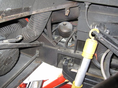 | スリット入りのインナーを外します。ネジは鉄なので錆び止め必須。 | ブロアとABSブレーキのポンプが見えます。 |