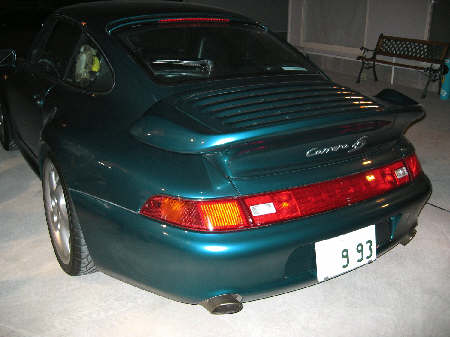 んーこれも良い車ですね〜。特に私的に、993のリアビューは好きでして、大きなリアフェンダーが大好きだったりします。ターコイズ・グリーン・メタリックと言う色らしく、とても落ち着いたアダルトな感じの車です。明るい場所で見るともう少し蒼が鮮やかで華やいで見えそうですね。とてもゴージャスです。ターコイズ→タコズ→タコ蔵と命名されて、既に名前も決まっていました。。。ターコイズは、幸運とか成功とかを表す色で、身に着けると良い事が有ると言われます。中々魅力的な色ですね〜。