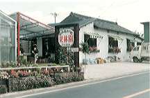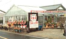 | 看板の柱にしっかりとアイビーが茂り 店構えにも歴史が出てきました、看板の下には 売れ残りのクレマチスが絡み付き、いちだんと 趣を増しました、御覧の通り駐車場にまで 商品(草花苗)があふれだし、手狭になって きたことは確かです。 |