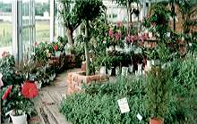 | 店回りも窓辺も花盛り 温室内は 流行のハーブ ガーデン |