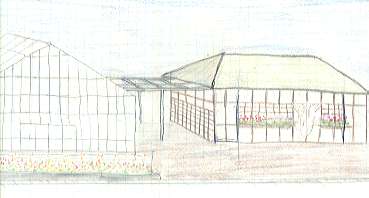| 温室会社に設計してもらった設計図です。 11bx6b,約20坪 サッシのガラス部分以外の妻面 屋根はグラス繊維です |