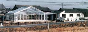 園芸店の建物ができました 右側の建物は農具小屋に 改造を加えたものです 温室前の土留めは枕木を 利用 |
