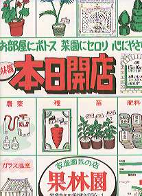 園芸ニュース第一号 4月から毎月出すようになったチラシです 安売りのチラシではなく、今やるべき園芸作業を 知らせるために出しました 項目を庭木、野菜、花、観葉植物の今月の作業としました B4の大きさで緑1色で刷り、新聞折り込みで毎月1日に 各家庭に届きました。 |