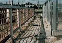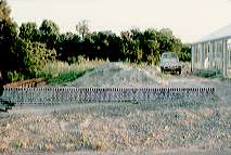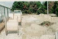 | 駐車場と屋外の通路は砕石を敷くことにして、それ以外の 所は山砂を20cm程の厚さに入れることにしました、大型 ダンプ5杯の山砂を一輪車とスコップだけで均しました。 鉢花や観葉を置く台は「枕木」と写真左に写っている電線の 「リール」を使うことにしました。 |
