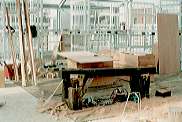| レジを置く机3脚と小袋の肥料、用土を置く商品棚2脚を 作っている作業台です、店の雰囲気、使いやすさを考えて 殆どを作ることにしました。電動工具は商品でしたが自分の 道具になってしまいました。 写真の後ろに白く見えるのはプラ鉢など嵩張るものを載せる 棚ですが、同時に商品をストックさせるスペースを温室内に作る役目もあります。 |