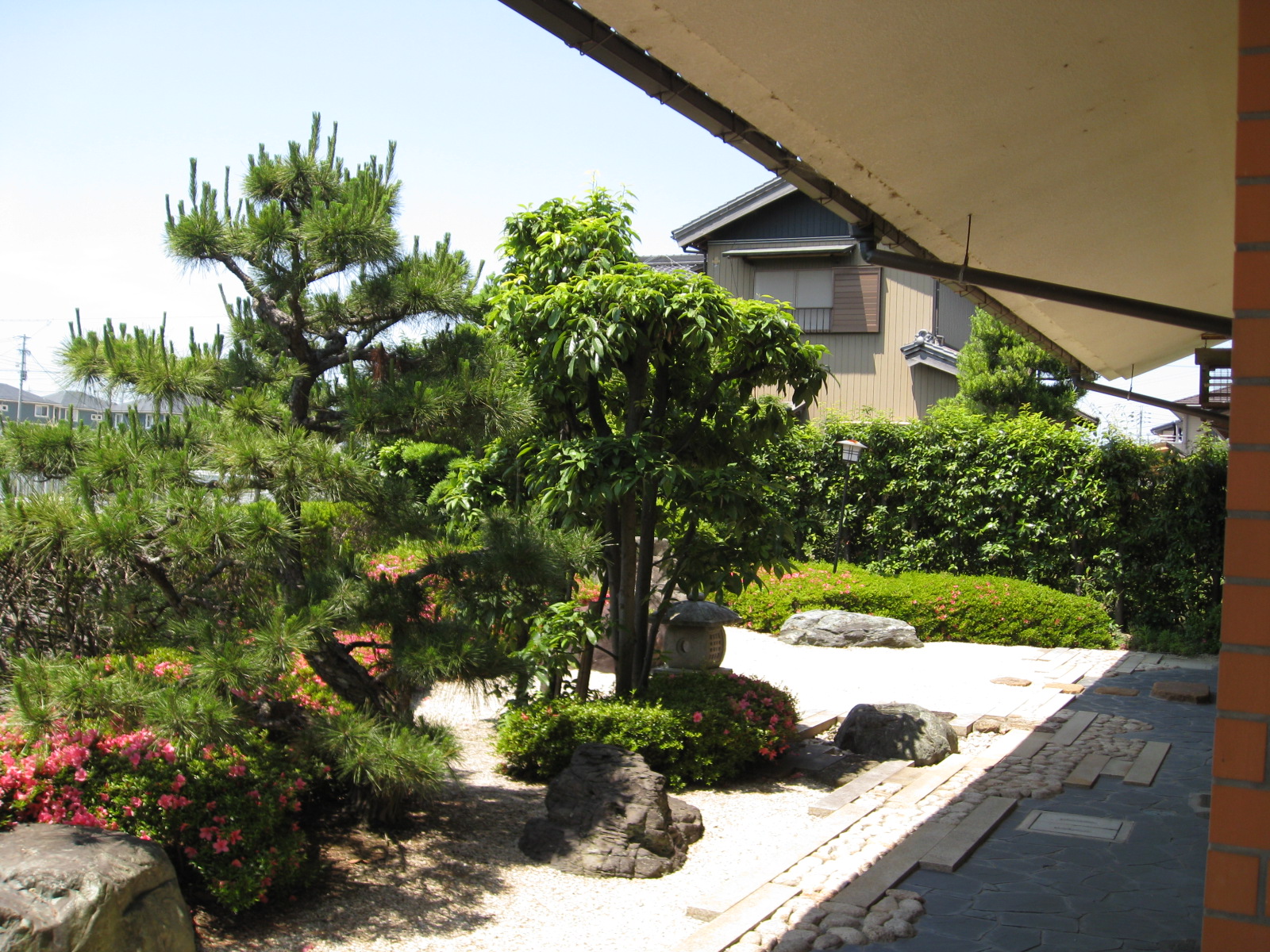| 会館の日本庭園です。事務室からの三景。こころが疲れた時に、庭に目をやるとぐっと落ちつきます。特別な行事の時(OBG会など)は、使わせていただいています。 |