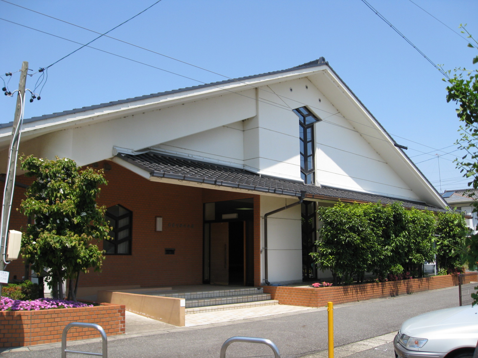 | 砂川会館の前景と、教室の正面玄関。写真中央の入口、右手奥が「ステップ」の教室です。 |