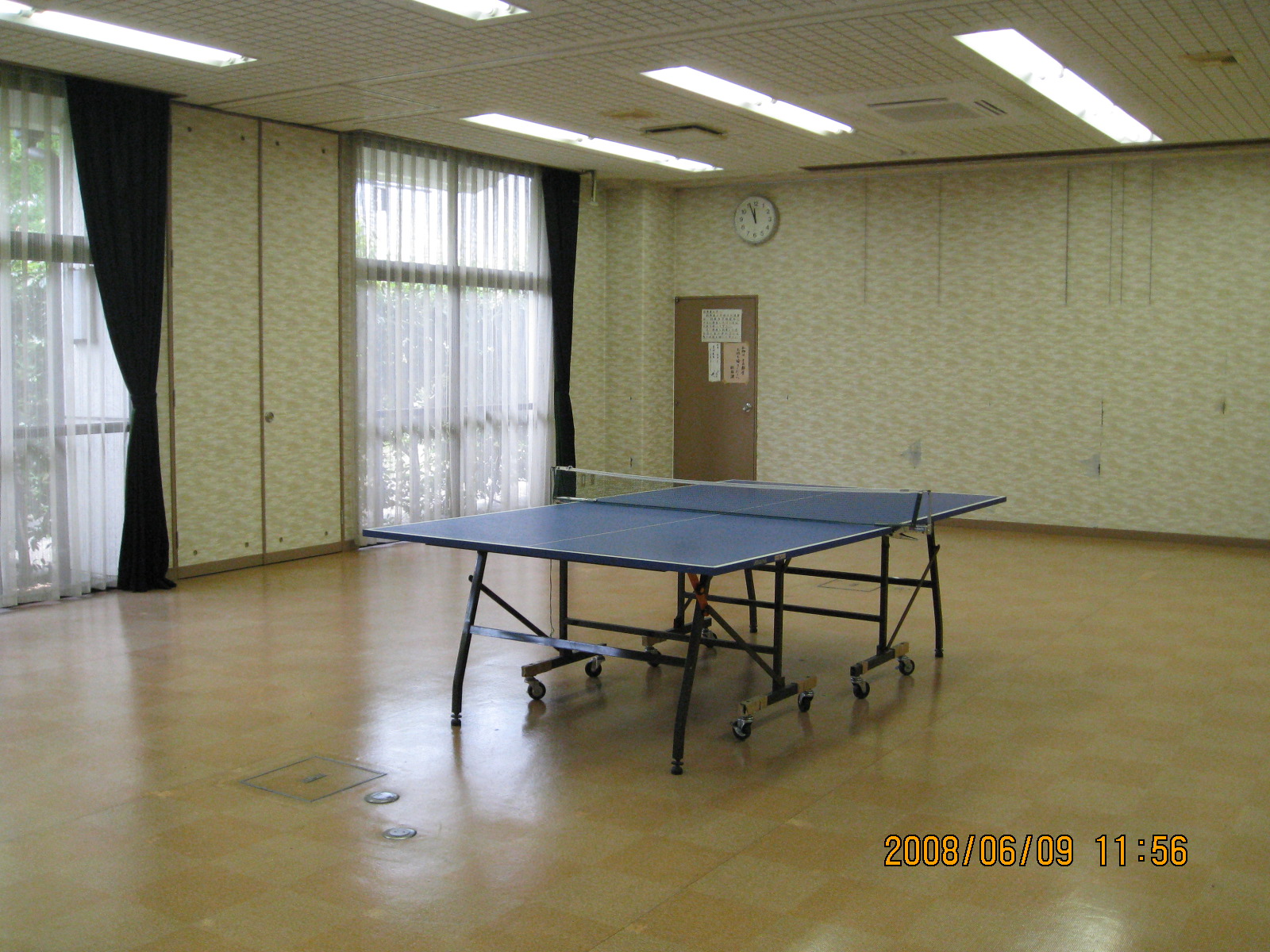 | 会館のホールです。普段は、地域の方々が活動されますが、空いている時には、卓球や軽い運動などで、利用させていただいています。 |